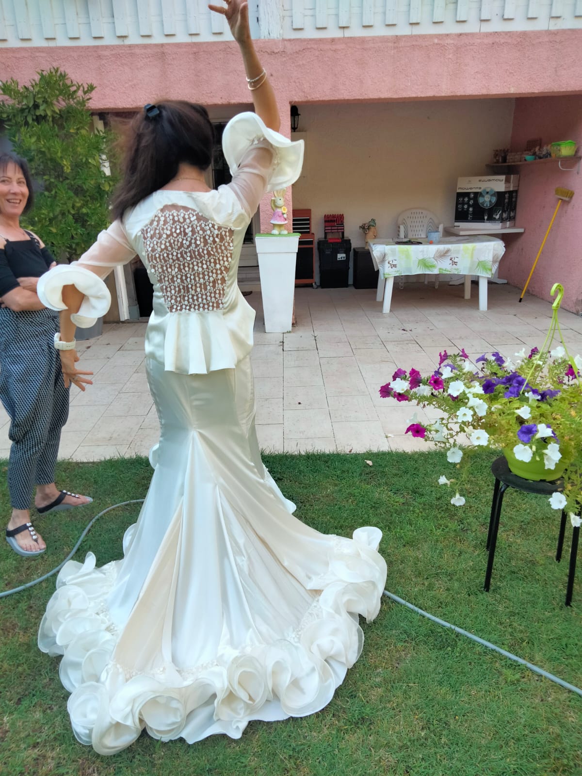 L’entretien est aussi passionnant parce qu’il donne accès à la réalité d’un atelier. Dolores explique qu’elle aime parfois travailler la nuit : pas de bruit, pas d’interruption, une concentration totale. Elle partage des anecdotes très “vraies” : un incident (départ de feu) la veille d’un événement, ou encore une création spectaculaire conçue pour une artiste sur échasses, impossible à essayer à l’intérieur faute de hauteur sous plafond.